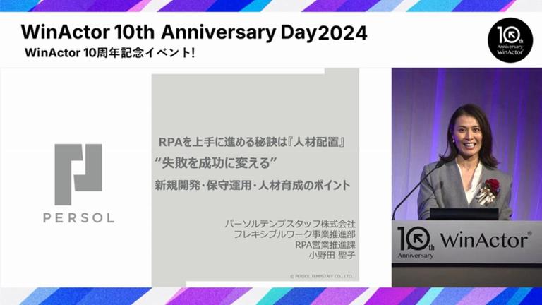 2024年10月8日に大阪で開催した、WinActor10周年記念イベントでのユーザー講演の動画です。